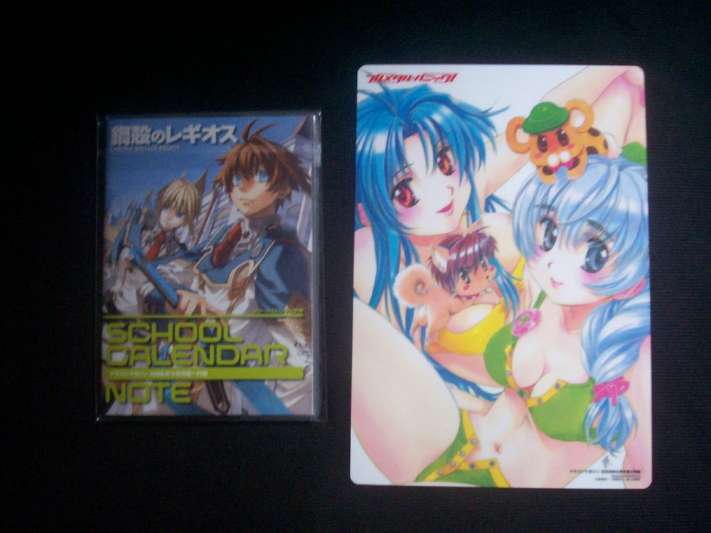 Já a Dragon Magazine veio com dois anexos muito bons. O primeiro é um shitajiki de Full Metal Panic! com a arte original da série, feita por Shiki Douji. O segundo anexo é um calendário 2008/2009 com a temática de Chrome Shelled Regios, que está na capa como já mencionei também. O interior da revista é basicamente de capitulos de novels que saem pela revista como Full Metal Panic!, High School of Death, Black Blood Brothers e etc. Claro que o que me interessou mais foi FMP!, afinal sou fanboy da série e assim que me falaram sobre o Shitajiki na revista, não pensei duas vezes em tê-la em mãos XD.