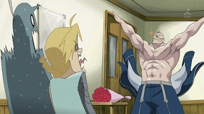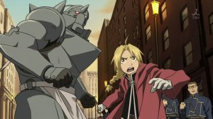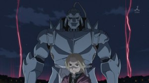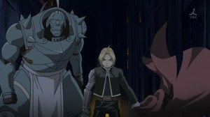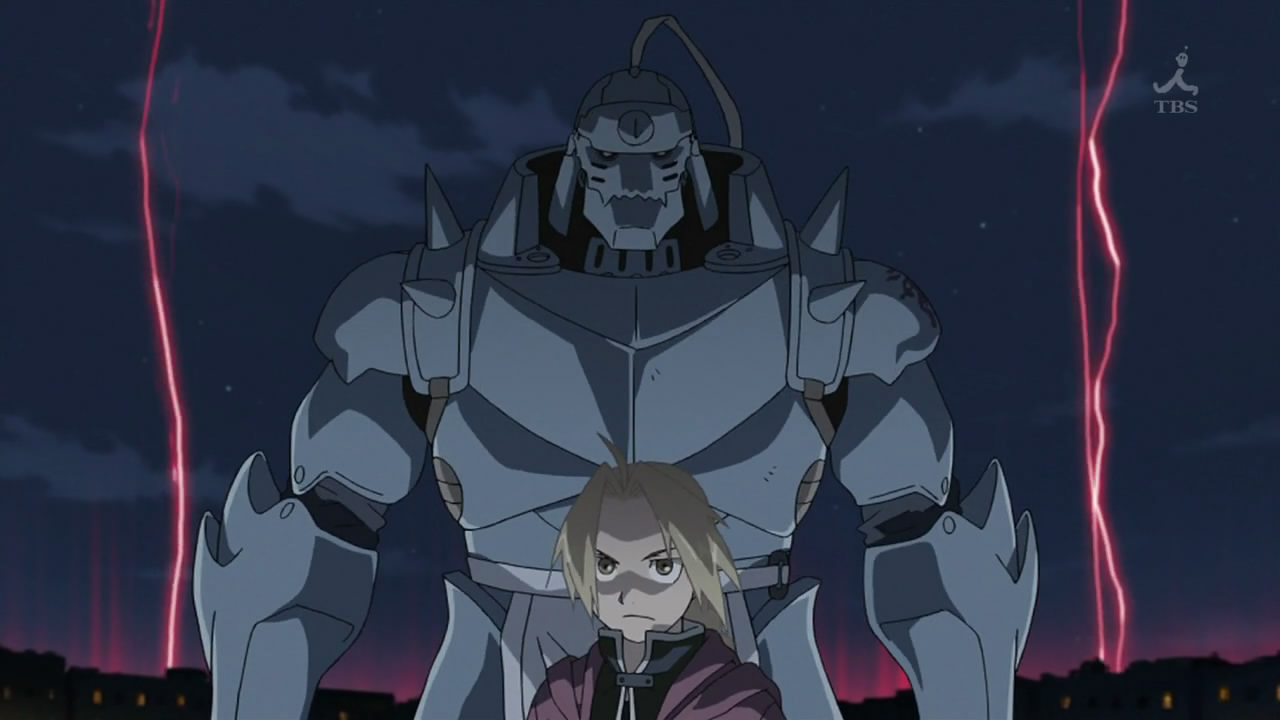 Fullmetal Alchemist: Brotherhood é um remake da primeira série do anime de Hagaren mas dessa vez, segundo os produtores, a idéia é ser bem mais fiel ao mangá. O estúdio é o mesmo da primeira temporada, o BONES mas como já tinha sido anunciado o diretor é outro, agora quem dirige o anime é Yasuhiro Irie. Logo que foi anunciada essa nova temporada de Hagaren todo mundo ficou esperando uma adaptação incrivelmente fiel ao mangá mas o primeiro episódio, pelo menos em parte, deixou o pessoal surpreso quanto a abordagem inicial. Esse primeiro episódio é bem diferente do que todos esperavam mostrando até mesmo um personagem novo e uma linha cronológica igualmente diferente da primeira série e do mangá. Particularmente eu achei que ter começado assim foi até interessante, pois apesar de ser um remake, o começo da primeira série é igual ao mangá e por isso ter 2 episódios iniciais praticamente iguais seria no minimo inusitado.