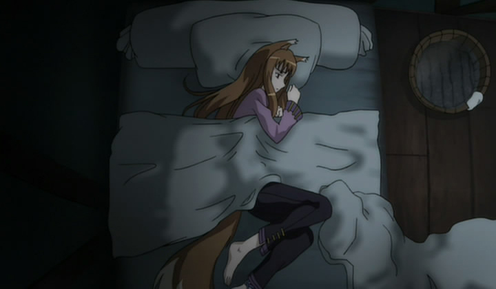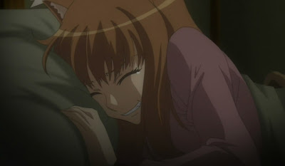 Há algumas partes bem engraçadas no episódio como o fato da Horo fica agitada quando Lawrence está por perto e os métodos usados por Lawrence para cuidar de Horo. Eu gostei bastante do episódio pois é um tipo de aquecimento para a próxima temporada que provavelmente deve estrear no verão japonês e tem um clima bem tranquilo, quase que inteiramente se passando no quarto onde Horo está descansando. As BGMs continuam muito legais e a que toca no começo é bem interessante. É um bom episódio para quem gostou da primeira temporada do anime e quer ver mais um pouco da relação extremamente interessante entre Horo e Lawrence.