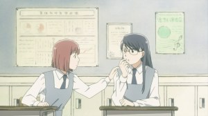 Apesar de ser considerado Yuri (romance entre mulheres) o anime, pelo menos até agora mostrou que apesar da temática, será focado bem mais na relação entre os personagens do que no romance das duas em si. Posso estar errado, afinal só foi lançado o primeiro episódio, mas foi essa a impressão que a série me passou. O desenvolvimento do enredo tem um ritmo bem lento mas que não influi em nada na série pois o próprio Kenichi Kasai tem uma maneira de dirigir muito bem que é primeiro explicar tudo, ir construindo toda uma história focando em cada um dos personagens para depois, com tudo isso já concreto, continuar com o enredo. Foi assim em Nodame e em Honey and Clover e pelo jeito também será assim em Aoi Hana.