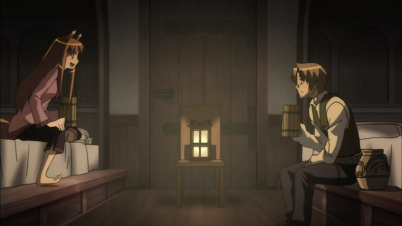 É interessante, porém falar que a relação de Lawrence e Horo continua na mesma incógnita da primeira temporada onde nem quem está assistindo sabe muito bem os sentimentos que cada um sente pelo outro. Não dá pra saber se é apenas companheirismo entre ambos para vender e comprar coisas ou há algo a mais. Claro que rola um afeto entre eles, os dois inclusive brincam quanto a esse assunto mais nada que seja muito aprofundado com o passar do tempo.