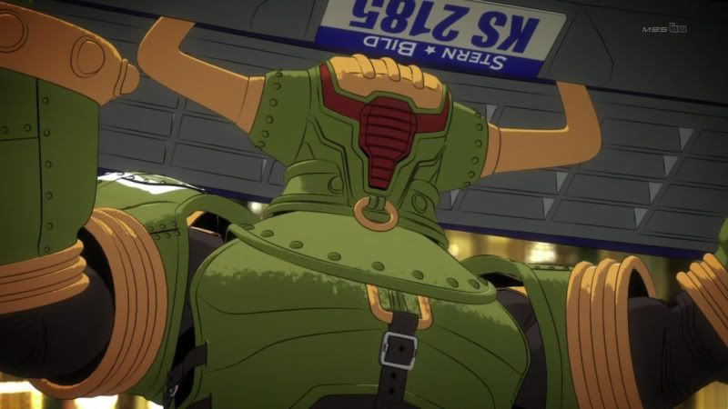 Talvez uma das coisas mais interessantes de Tiger & Bunny é o fato de que cada NEXT usa uma roupa que leva o nome de alguma empresa, mas o diferente aqui é que não são empresas que só existem no universo do anime mas sim empresas do mundo real, que compram um “espaço publicitário” na roupa dos heróis. Eu nunca tinha visto esse tipo de publicidade em animações japonesas e o fato dos personagens serem super-heróis tornou isso ainda mais legal. Pelo fato de ter uma gama de personagens com suas devidas marcas, a preferência em cada um não fica apenas no anime, mas sim em quem assiste. É como se aplicassem o modelo de marketing e patrocínio da Fórmula 1 em um anime, que tem uma competição como pano de fundo mas que promete contar também a vida de tais super-heróis quando não estão combatendo o crime, principalmente Kotetsu Kaburagi, o Wild Tiger.