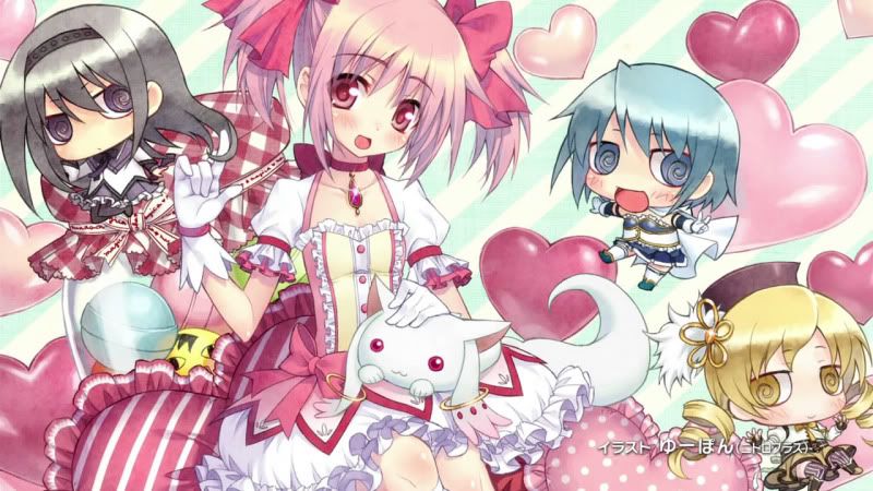 Ainda não sei se comento a série, ando meio sem tempo, mas se der na telha acabo comentando. Os animes da temporada atual continuarão sendo resenhados aqui na medida do possível pois ainda falta comentar algumas séries. Sem mais delongas, as ilustrações de Puella Magi Madoka Magica.
