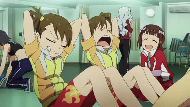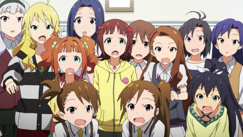 A 765 Pro tem, além de 12 idols, 3 produtores e o presidente sendo que cada uma das 12 meninas tem uma personalidade diferente e é ai que a série começa a se tornar interessante. O primeiro episódio da série funciona como se fosse uma entrevista para a TV com todas as garotas mostrando como é a agência 765 por dentro, o que cada uma faz e quais seus objetivos. Tendo uma visão em primeira pessoa, o episódio funciona como se você fosse o entrevistador e as idols estivessem falando sobre a sua vida diretamente para o telespectador, sem intermediários. Foi uma sacada genial, afinal o jogo também é mais ou menos nesse estilo. Ao passar do episódio você vai percebendo que a agência é um lugar muito acolhedor, pois as meninas se divertem bastante e como a quantidade de personagens é muito grande, mesmo focando em uma de cada vez, as outras acabam interagindo entre si, tornando a série mais divertida. Gosto muito desse estilo de narrativa, principalmente quando a animação é boa, algo visivelmente perceptível em produções do A-1 Pictures, um dos estúdios mais competentes do Japão atualmente.