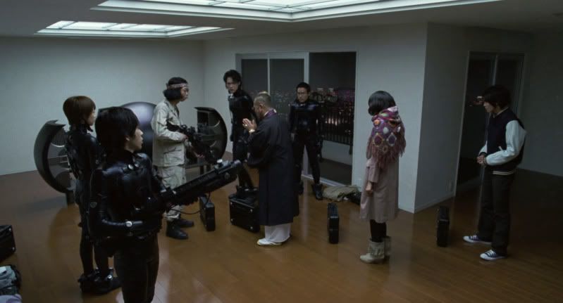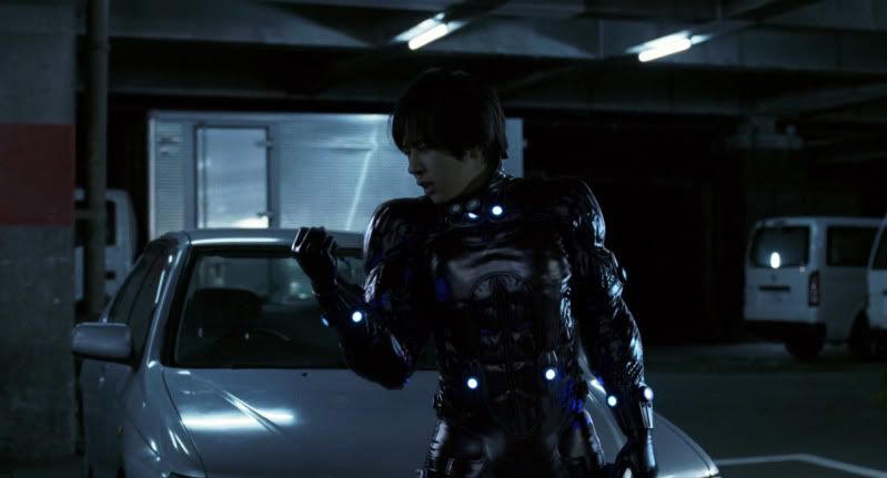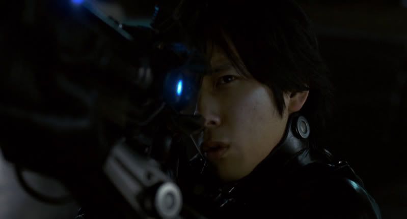 Seria impossível comentar do filme de GANTZ sem falar das armas, roupas, efeitos, sons e o próprio Gantz. O fato do filme ter sido acompanhado de perto por Hiroya Oku fez com que as roupas e as armas ficassem absurdamente perfeitas. A maestria como cada detalhe foi feito para parecer algo realmente crível foi sensacional. O efeito de transferência dos personagens também ficou muito legal, praticamente idêntico ao original onde as partes internas das pessoas, objetos e armas aparecem como se fosse realmente um scanner. Eu fiquei muito animado com os efeitos especiais do filme, o nível é altíssimo. Os aliens também foram muito bem trabalhados e são quase uma cópia perfeita do que pode ser visto no mangá, ficou demais!