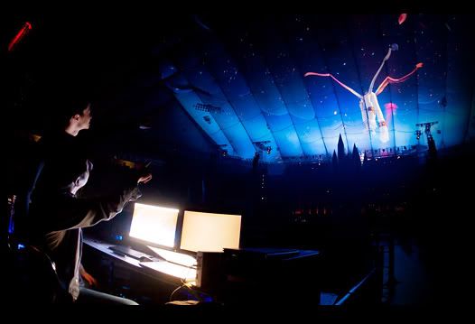 O Kagaya Studio é bastante conhecido pelas belíssimas ilustrações tendo sido responsáveis por filmes como “The Celestial Railroad” que conta a história de um trem que viaja pela Via Láctea. No dia do LIVE CASTLE eu vi algumas imagens em LQ e sabia que havia tido algo absurdamente foda envolvendo projeções no Tokyo Dome, pois algumas pessoas que eu conheço que estavam lá surtaram absurdamente no twitter sobre isso depois do show. Eu não tinha visto nenhuma imagem que mostrasse como foi a projeção propriamente dita (a Nana postou uma foto no blog, mas era muito pequena)… até agora. Hoje no site oficial do Kagaya Studio algumas imagens e dados técnicos da projeção nos shows foram divulgadas e MANOLO, ver isso ao vivo deve ter sido algo inacreditável. 40.000 pessoas em cada um dos dois dias do LIVE CASTLE puderam ver uma incrível projeção da Via Láctea em alta definição com 100 metros de largura a uma altura de 50 metros, além de imagens em 3D de constelações e estrelas do universo. Para realizar a apresentação foram necessários 14 super projetores especiais, distribuídos em um raio de 200 metros dentro do Dome.
