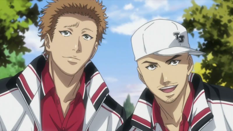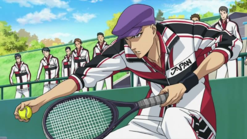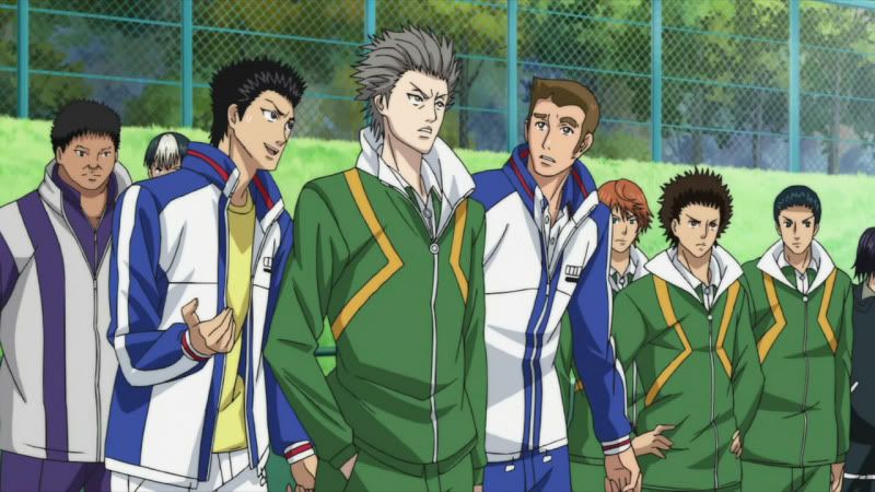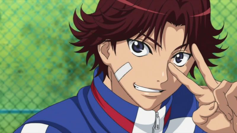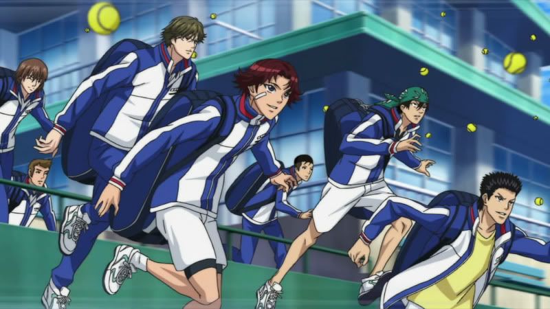 Echizen, Tezuka (que na dublagem do Animax era chamado de Teska, lol), Fuji, Oishi, Kikumaru, Kawamura, Inui, Momoshiro e Kaidoh estão juntos novamente e desde a série antiga eu considero a química entre os personagens excelente. Echizen, o protagonista, é um personagem principal que poucas vezes se vê em shounens. Ao contrário de muitos personagens bananas e que se fazem de coitadinhos, Echizen consegue ser o moleque mais arrogante e cheio de si da quebrada, o mano sabe tão bem as próprias capacidades que isso dá a margem para o mesmo esnobar MUITO a galera, ele não tá nem ai. No anime antigo o puto não perdoava nem o pai, que foi quem ensinou tênis pra ele; Tezuka faz jus ao nome e é considerado o Deus da escola, o cara quase não joga, mas quando joga, VÉI, sai de perto que ele vai cravar 3 sets a 0 em você que tu vai nem ver. Ele é o badass do anime; Fuji é o personagem reservado e que esconde o seu “poder oculto” por trás de seus olhos fechados. Se ele abrir o olho, você tá ferrado; Oishi é o mais sensato do grupo num modo geral. Enquanto os outros tão fazendo palhaçada ou esnobando a galera, ele é aquele cara que chega e fala “OPA, CALMA AE CHAMPS” e resolve na conversa. Joga muito bem em dupla com Eiji, o meu personagem preferido e considerado a Daiane dos Santos do Tênis. Pra ele não basta jogar, tem que dar um triplo carpado na quadra. Ele é bem engraçado e junto com Momoshiro fazem o alivio cômico do anime. Momoshiro é o lado humilde da Seigaku, tá lá pra jogar tênis, de boas e faz o papel muitas vezes do telespectador como um “homem comum”; O Kawamura é outro personagem calmo, até pegar uma raquete e ficar ON FIRE. É o personagem da força bruta, o cara fica na pilha foda jogando; Inui é o tipico personagem das estatísticas. Manjam o Switch de Sket Dance? Então, é IGUAL e isto basta. Por ultimo temos Kaidoh, o Rafael Nadal da Sengaku. O cara é meio esquisito, tá sempre com cara de nervoso, mas tem técnicas absurdamente bem apuradas pro tênis. O voleio desse mano é inacreditável. Essa é a Seigaku e mesmo sem tantos detalhes, é assim que você é apresentado aos personagens nesse novo anime.
